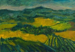 Vinyard-scapes will populate the Tubbs Gallery during Hollander’s solo exhibition. Wine Routes presents viewers with uniquely personal remembrances of Hollander’s extensive travels through the great wine regions of the Old World and New World. As an artist, Hollander is drawn to the dialogue between the formal aspects of a painting and the emotional responses elicited in the viewer. While a painting may have its genesis in a specific time and place, the real subject is the memory of the initial sensation of the encounter. Capturing the play of sunlight across a row of vines or a field of lavender is no more important than the sense of wonder felt when looking down from, or up at, a hot air balloon over Napa Valley.