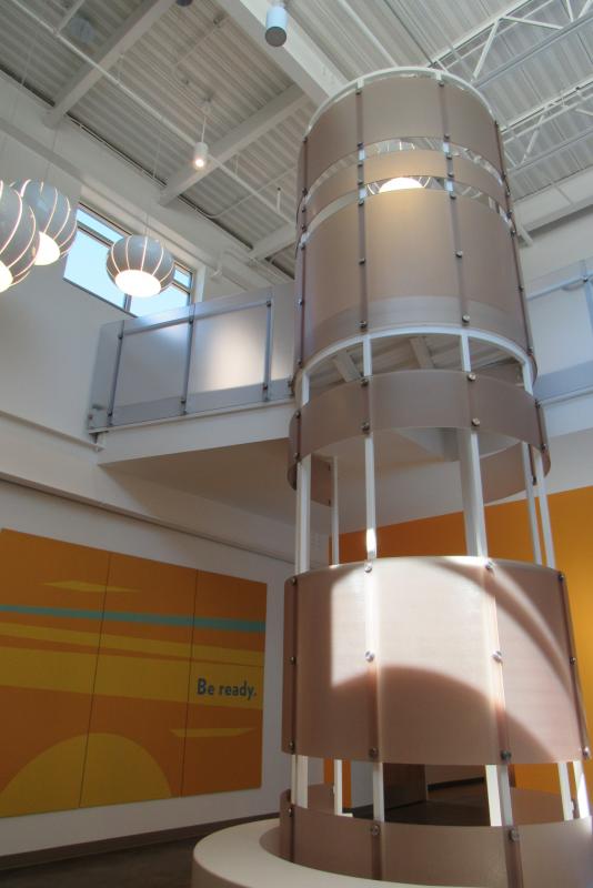 Bassett said officials were also able to save money in design costs by reusing previous designs but incorporating Rehoboth-themed details, such as a line of welcoming cabanas in the main lobby and the reproduction of World War II fire control towers at the stairway. The school is built to accommodate 720 students.