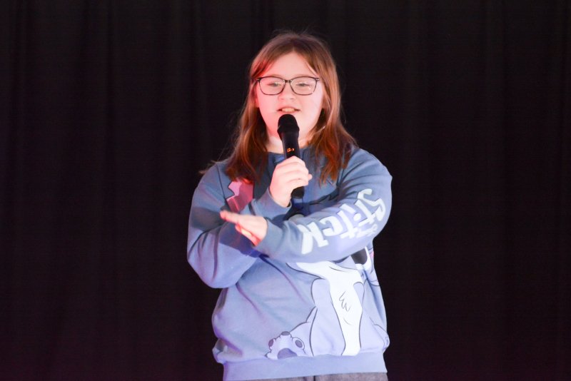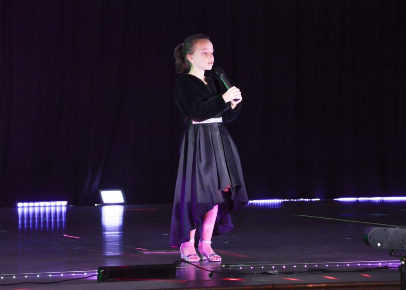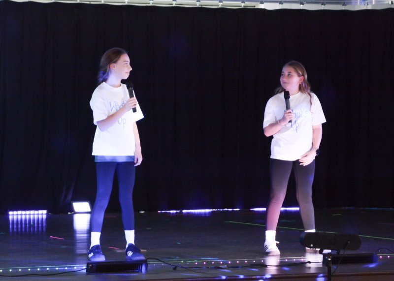 Leading up to the talent show, all students had the opportunity to audition and earn a spot, with about 75 students participating overall. Those who were not selected were invited to apply as announcers or part of the stage crew. “Our stage crew was instrumental in helping make the show run smoothly,” said Kellyann Palladino, art teacher and talent show producer. “These students helped with props, spotlights, handing participants microphones, and the announcers even closed the show with a choreographed dance to the hit K-Pop Demon Hunters song, ‘Golden.’”