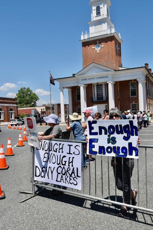 It’s become almost a commonplace scene as groups of residents, organized by the grassroots group Sussex 2030, come to The Circle in Georgetown to protest against the pace of development in Sussex County. Recently, most of the attention has been toward Coral Lakes, a proposed 315-lot subdivision on a 152-acre parcel along Robinsonville Road near Lewes. The application was denied by Sussex County Planning & Zoning Commission March 10, and developer Schell Brothers has appealed the decision to Sussex County Council. The appeal will be heard at 1:30 p.m., Tuesday, May 24.