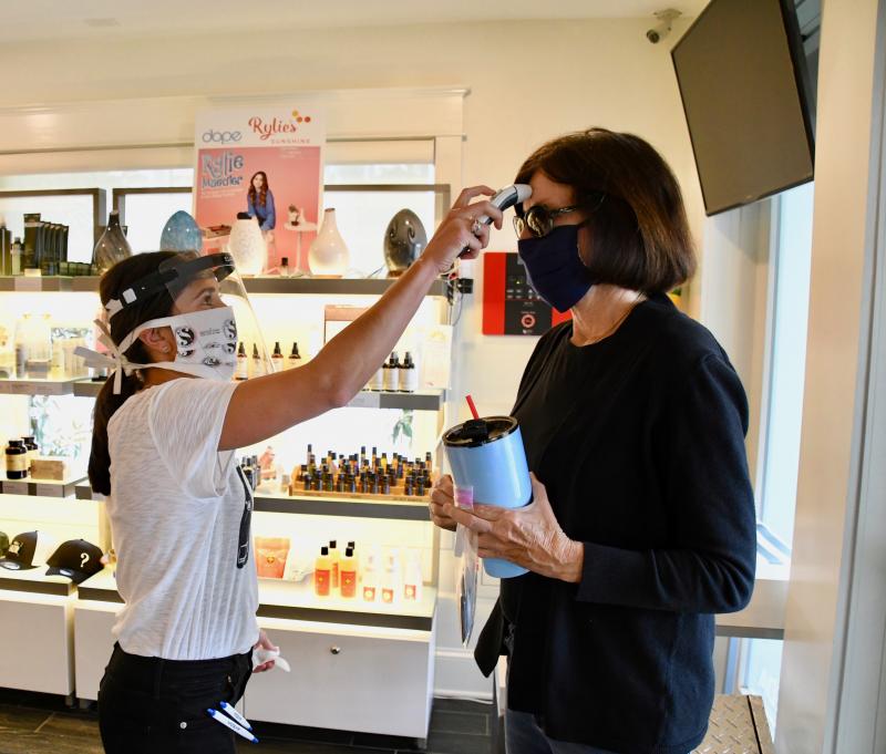 Stylists, fitted with face shields, and wearing gloves and masks, must follow strict sanitation standards at their stations before and after a client leaves. Temperatures are taken as customers enter the front door.