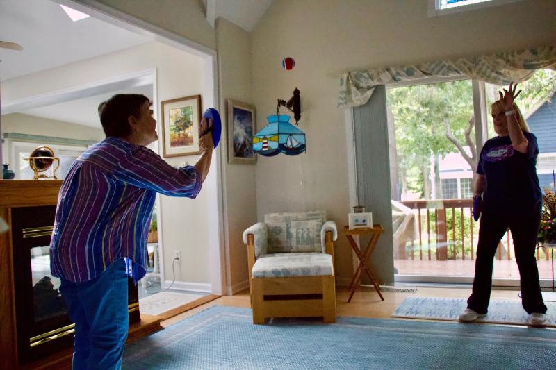 Consistency is one of the most important elements to her care. In some cases the brain is relearning certain concepts and, like a muscle, requires repetition for growth. Tricia takes time with the families of her clients to suggest beneficial daily exercises. In the case of Rehoboth Beach residents Toni Worsham and Anita Stockton, Tricia provides different levels of care for each. Toni is more active and participates in muscle function exercises like catch, while Anita works on her posture and standing. Toni is left with instructions for how she can help Anita when Tricia is not there.