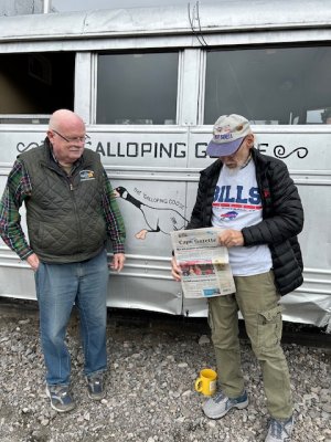Last October, Scott Aijo of Lewes and Delray Beach, Fla., met up with high school friend Bryan Green of Kalispell, Mont. They flew to Albuquerque and drove to Chama, N.M., for a ride on the narrow‑gauge train Galloping Goose. The train is an all‑day adventure that starts in northern New Mexico and meanders in and out of Colorado. The aspens were a brilliant yellow with touches of red, offering color that rivaled the best of New England. The Galloping Goose carries about 20 passengers and is staffed by an engineer, a trainman and a tour guide in the back. The crew members are all volunteers who perform a labor of love to keep the track open and running. The train is based in Dolores, Colo., and operates from Chama, N.M., to Antonito, N.M., on September and October weekends. In the spring, it runs from Durango, Colo., to Silverton, Colo. Lunch is provided, and the train makes several photo stops along the route. They even do fly‑bys, where everyone gets off the train. It backs up, and then comes flying by. It was an unforgettable adventure with an old pal and the Gazette!