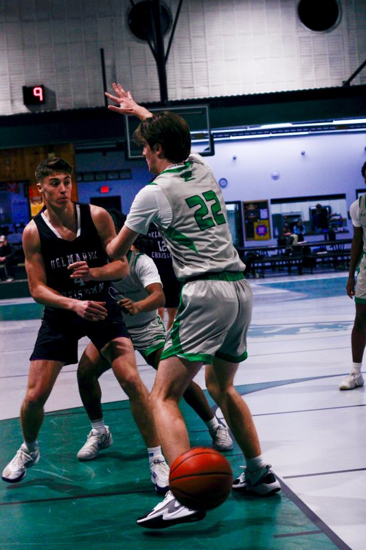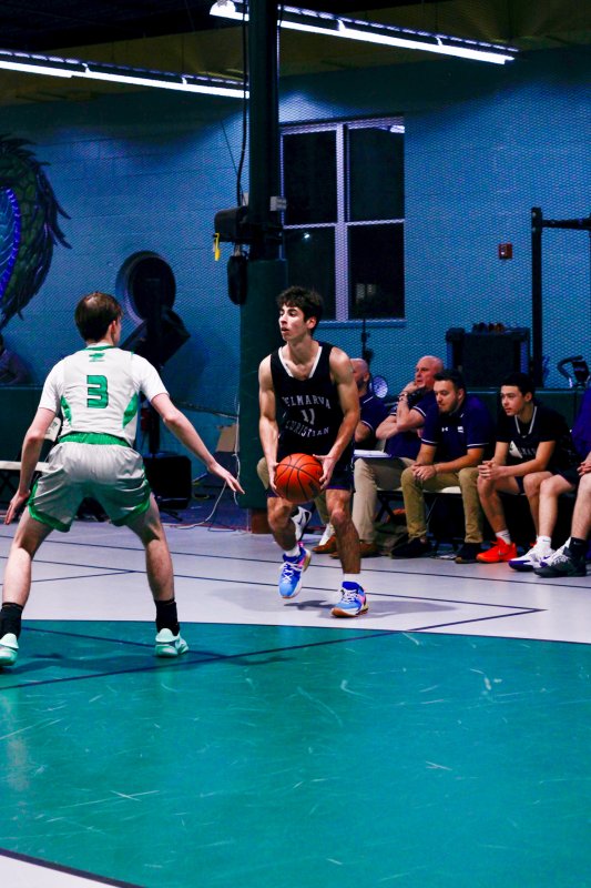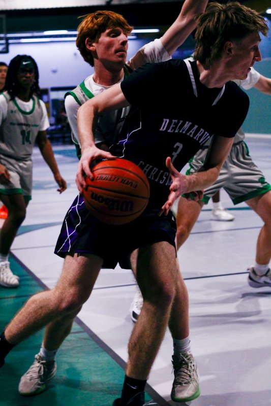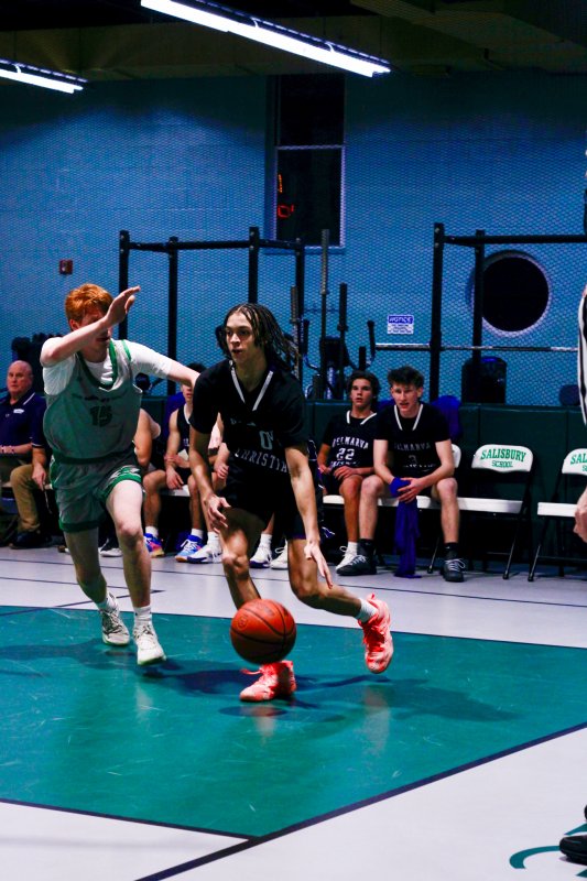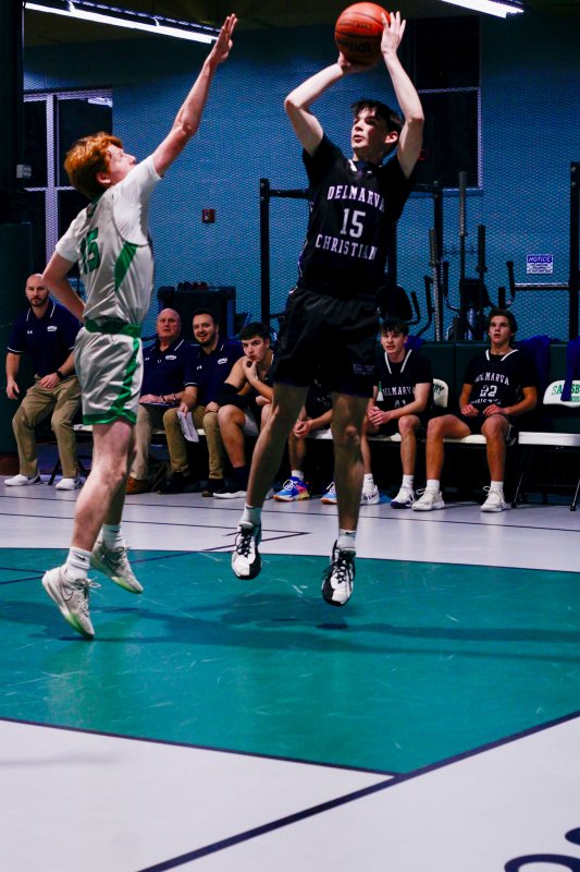 Collins took coach Pat Woods’ advice to heart and used his impressive footwork to complement his size and dominate in the paint. He chipped in a dozen, but could have had more if the game script was a bit tighter. Junior Noah Barbrow opened the scoring in the contest and had a game-high 14 points. Delmarva Christian kept the pressure up to take a 39-13 halftime lead.