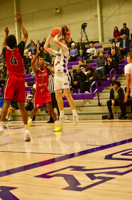 Against MOT Charter, Delmarva Christian junior Josh LoRusso hit a buzzer-beater to end the third quarter and make it a 39-38 deficit for the Royals. While the boys had grabbed the momentum of the moment, the Mustangs clamped down on defense and opened up on offense.
