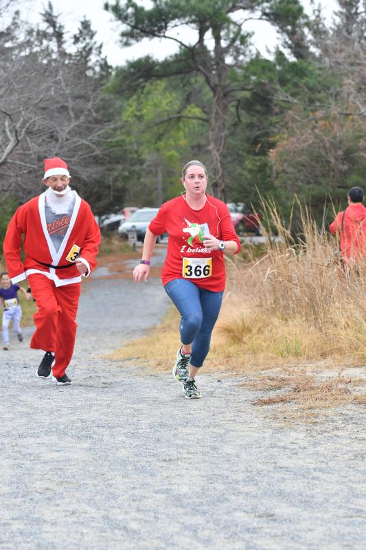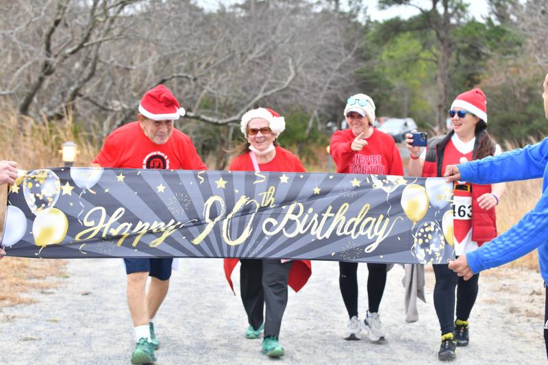 The 16th annual Run With Santa – he’s slow – 5K at Cape Henlopen State Park was won by 90-year-old Alberto Castillo, who set multiple records as the first 90-year-old to complete a Seashore Striders 5K or longer event. The time doesn’t matter to Alberto, an international economist who speaks five languages and is just a gracious/loquacious personality type loved by all in the extended running community.