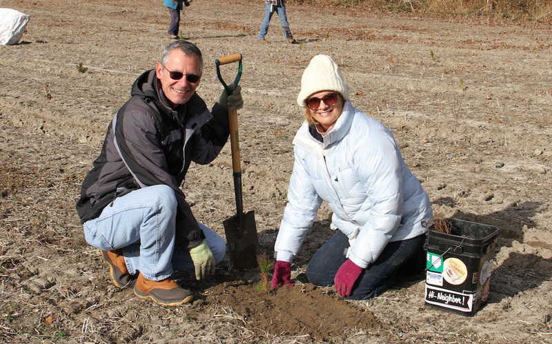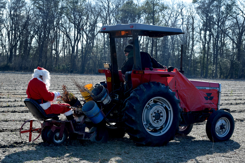 Santa and other volunteers carefully secured hardwood pine and shrub seedlings, all native species that are part of a reforestation effort at Bullseye-Ferry Landing Preserve off Route 24 in Millsboro and Perry Tract at Angola Neck Preserve. The cooperative effort among the center, The Nature Conservancy and the state Division of Parks and Recreation, calls for planting more than 30,000 seedlings on a total 37 acres at the two nature preserves.