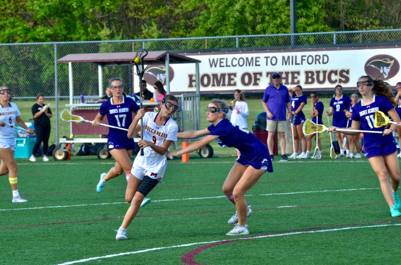Milford refused to go down without a fight. After Montgomery scored her second goal of the game, the Bucs rattled off five straight goals before Layton tallied her fourth goal with just four seconds left in the half to make it an 8-6 ball game.