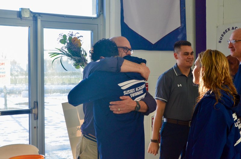 Following the meet, everyone on the team, coaches included, hopped into the pool to celebrate another successful season for Sussex Academy swimming. The winning may have stayed the same this season, but one thing that really stood out was the leadership of the seniors.