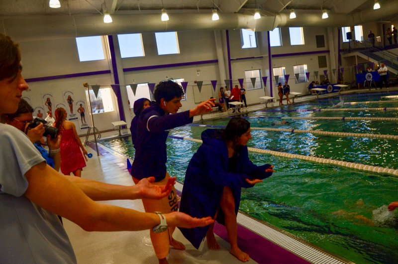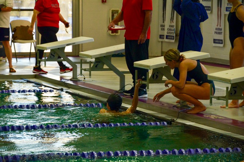 Take for instance the way they embraced 12-year-old Nolan Furlong, an eighth-grader who ran cross country and decided to give swimming a whirl. Believe it or not, the young man found himself swimming in the longest race of the meets, the 500 free. Whether it was Wright holding the lap signs for Furlong or Figueroa hoisting the lad up on his shoulders, the youngest member of the team was lifted to new heights.