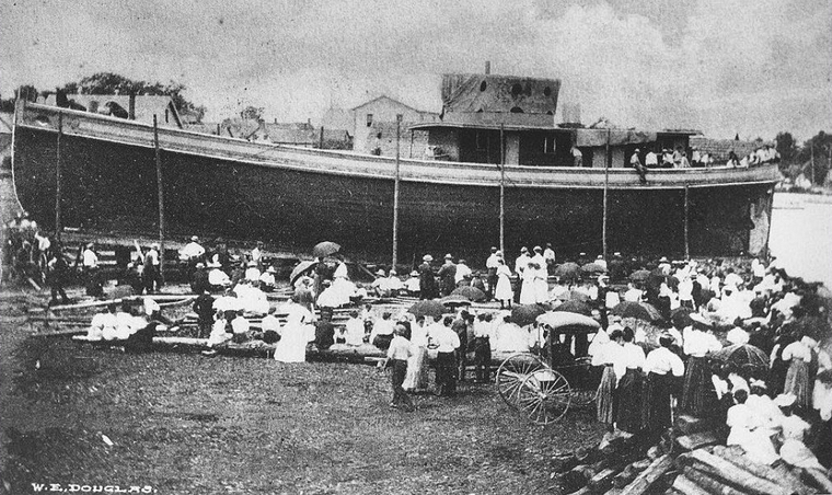 After several months of building, a ship launching was a major event in small towns. Schools and businesses were closed as nearly everyone gathered on launch day.