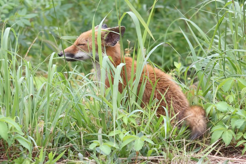 A red fox takes a snooze on the side of the road in Rich Giannola’s photo.