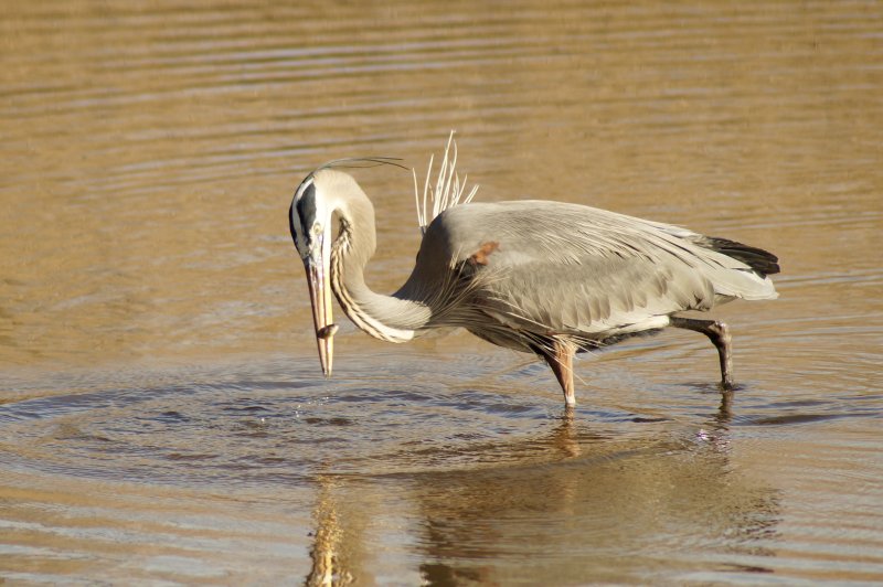 James Fisher went walking in the Prime Hook National Wildlife Refuge and found this heron snacking on a fish plucked from the shallow water along the path.
