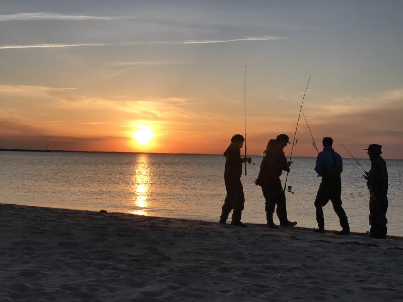 Fishermen discuss their catch at sunset along the shoreline at Cape Henlopen State Park in Lewes. Photo by Lisa Whitcombe.