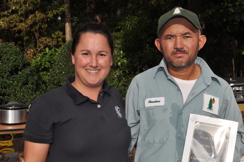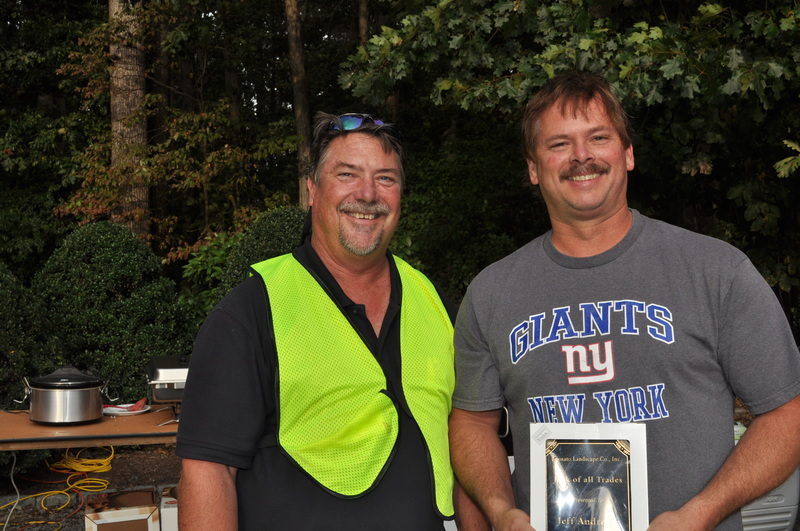 The Jack of all Trades Award went to Jeff Andresen. Crew Leader of the year Award went to Onesimo Cruz-Arono. Charlie Hustle Awards went to Jose Lopez-Elizalde and Juan Diego-Flores. Most Improved Awards went to Jason Dunn and Fred Romeo. Rookie of the Year Awards went to Dave Sallac in Irrigation and Octavio Chavez in Landscape. Iron Man Awards went to Juan Sanchez in Irrigation, Esteban Lopez at Peninsula, account manager Brett Hoagland and Dario Castillo, who also received his 10-year service award. Crew of the Year went to the Tuck 53 team including Octavio Chilel-Chavez, Pedro Morales, account manager Matt Martin and Truman Mason Jr. Team Player Awards went to Ryan Wharton in Irrigation and Maximo Saez-Feliciano.
