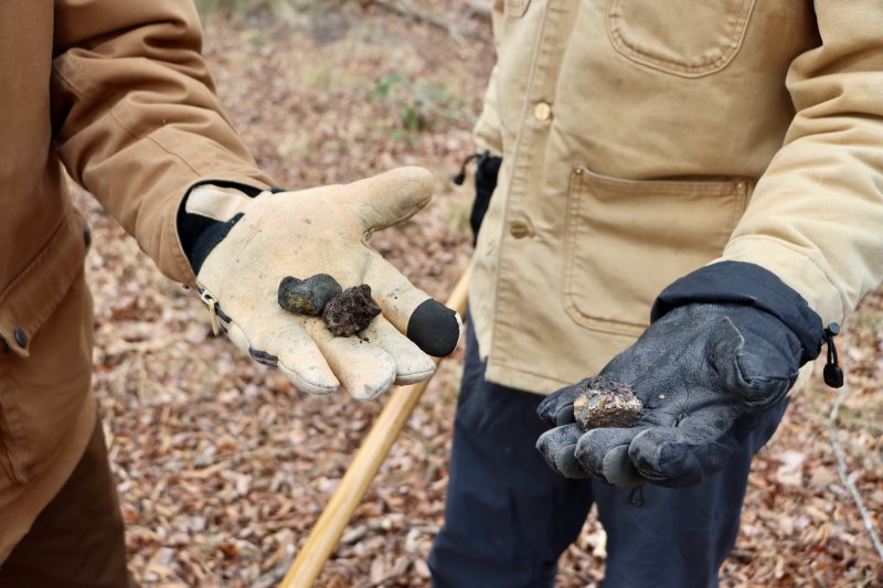 The men walked the old Queen Anne railroad bed, which runs through the center of the parcel. They dug into the soil to pull up some slag, a coal-burning byproduct used as ballast along the tracks more than 100 years ago.