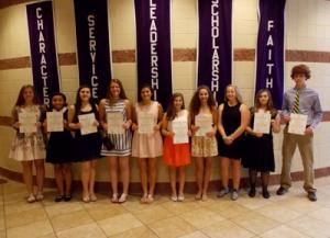 The Chancellor Chapter of the National Honor Society at St. Thomas More Academy inducted 12 students into membership. They are Mary Rose McArtor, Asia Poole, Marissa Garzarella, Elise Conlin, Sophia Stafford, Giulia Randazzo, Zoe Kelly, Ryan Anderson, Syla Lahiff, John Magee, Nicholas Olsen and Nicole Pinera.