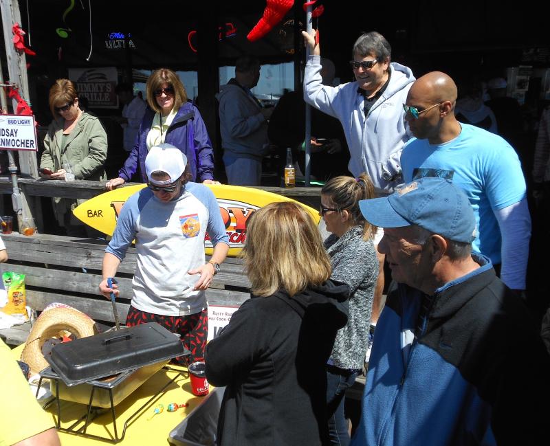The contest was held April 16 on the back deck under beautiful blue skies. New local band Reverend Lewes kept the deck hopping.