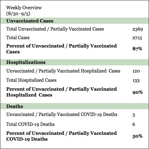 The number of community members hospitalized as a result of COVID-19 infection has continued to rise, officials said, and more than 95 percent of hospitalized COVID-19 patients are either unvaccinated or partially vaccinated.