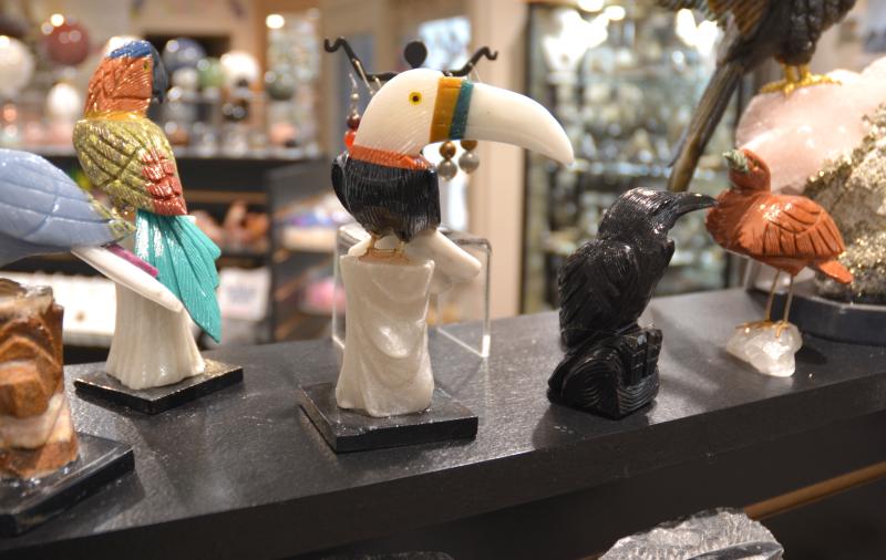 Hubbell said all the jewelry – dozens of bracelets and pendants – is made in-house. There are also carved stones and kid-friendly games.
