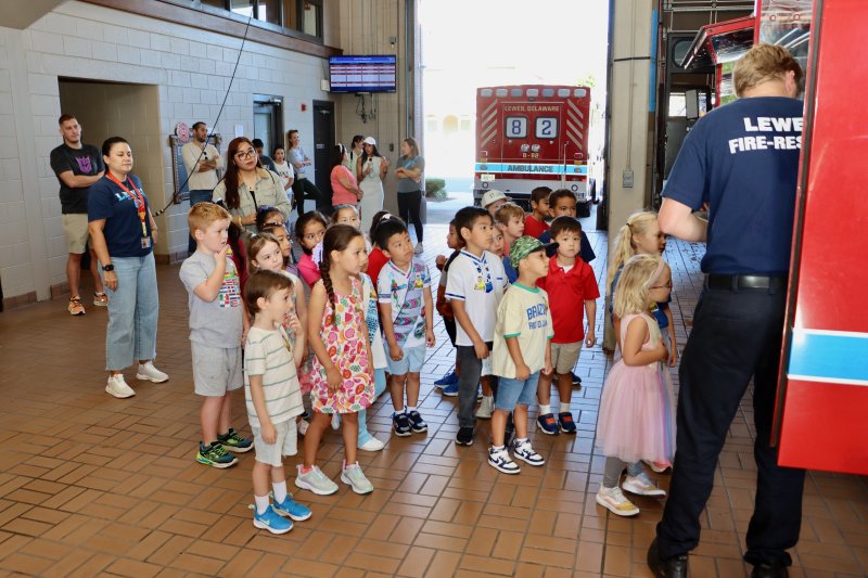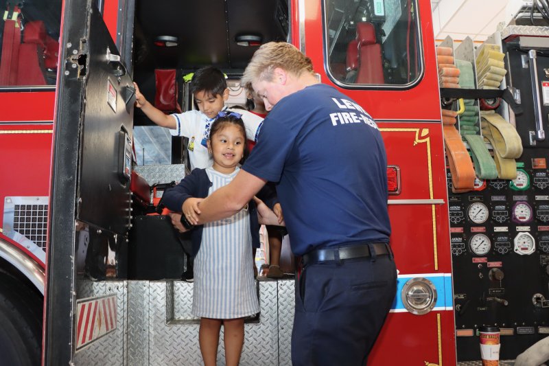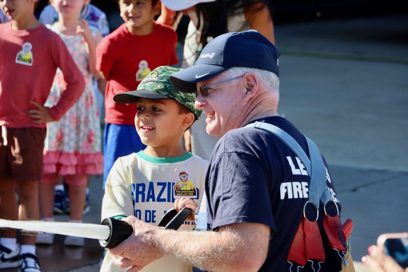 The students spent the morning seeing firsthand what firefighters do. They learned about the gear on the trucks and ambulances, and got to use fire hoses to put out a make-believe fire.