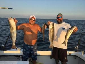 The surf has been easy to fish this year. DS Custom Tackle top and bottom rigs for the smaller fish; kingfish, pompano, croaker, spot, short striped bass, weakfish, cusk eels, sand perch, and of course skates, rays and sharks. The fish are still in close; the water is warming up but still cool enough to keep fish close to the beach at high tide.