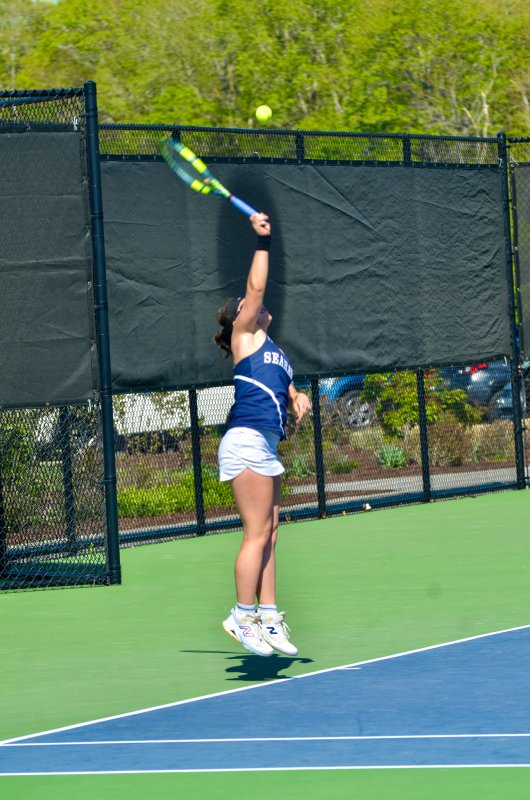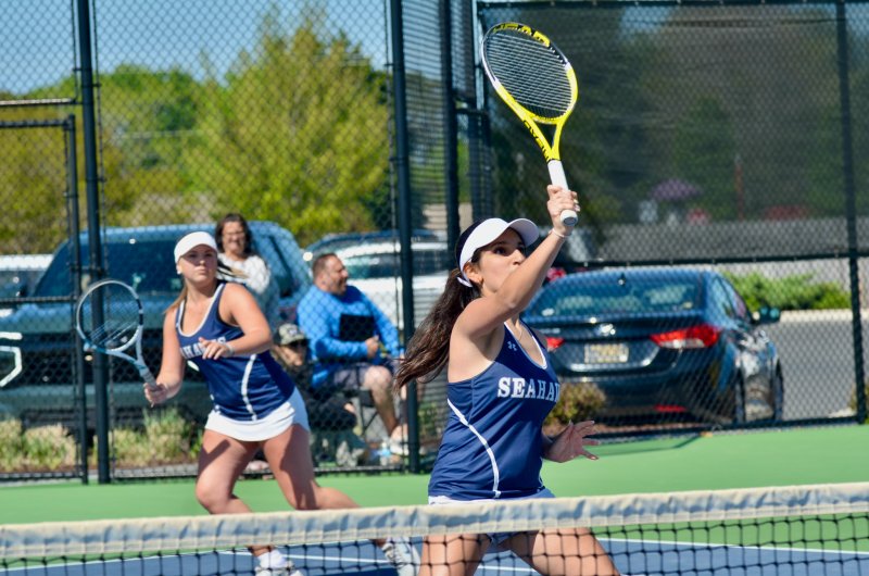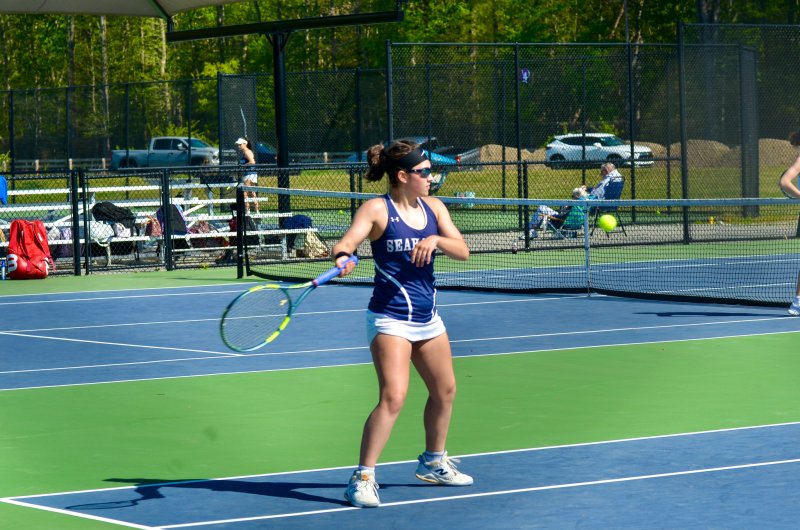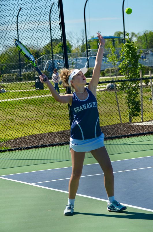 The girls on the Sussex Academy tennis team welcomed their rival Indian River to their courts for a Henlopen South showdown April 21. Despite some intense battles, the Seahawks were saddled with a 4-1 loss.
