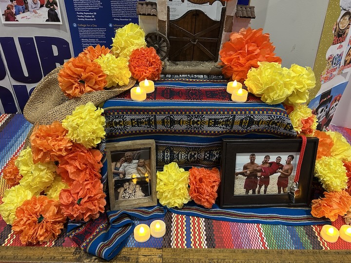 “The photos on the ofrenda are family and friends of Señor Caceres that passed away, and there are mementos such as the scissors and yardstick from Señor's grandfather,” Leni said. “The marigold flowers were all student made and are traditionally used to decorate during Day of the Dead, as their bright petals represent the sun.”
