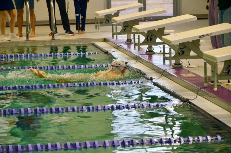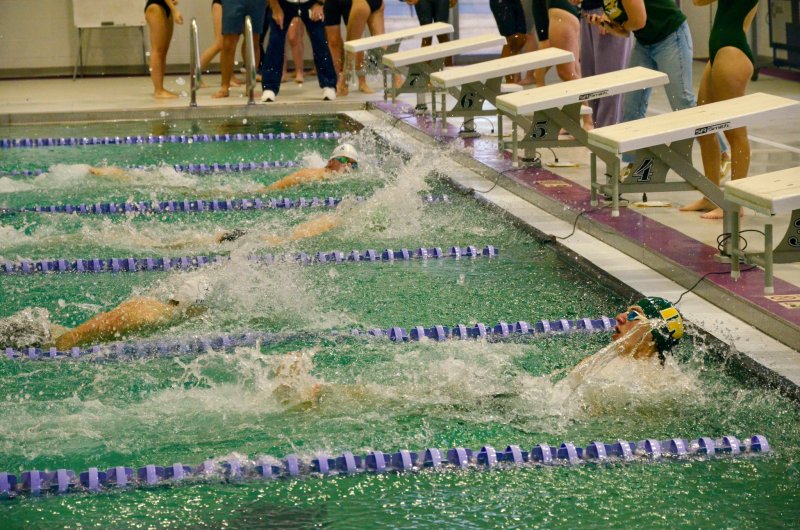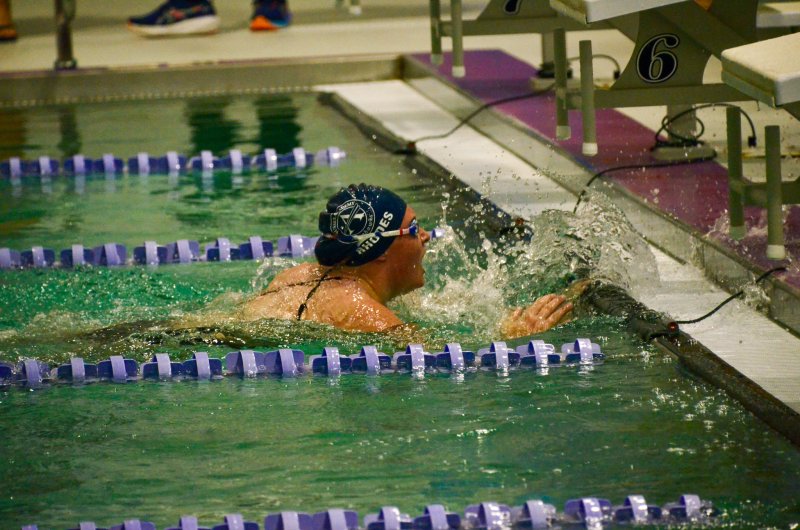 Evans’ 1:00.06 and 1:02.23 gave her the top prize in the 100 freestyle and backstroke, respectively. Freshman Kendall Rhodes took the 500 at 6:15.70. Eliza Evans swapped spots with Victoria to help the 200 freestyle relay team to victory. The Evanses teamed up with Rhodes and Perchiniak to win the 400 freestyle relay.