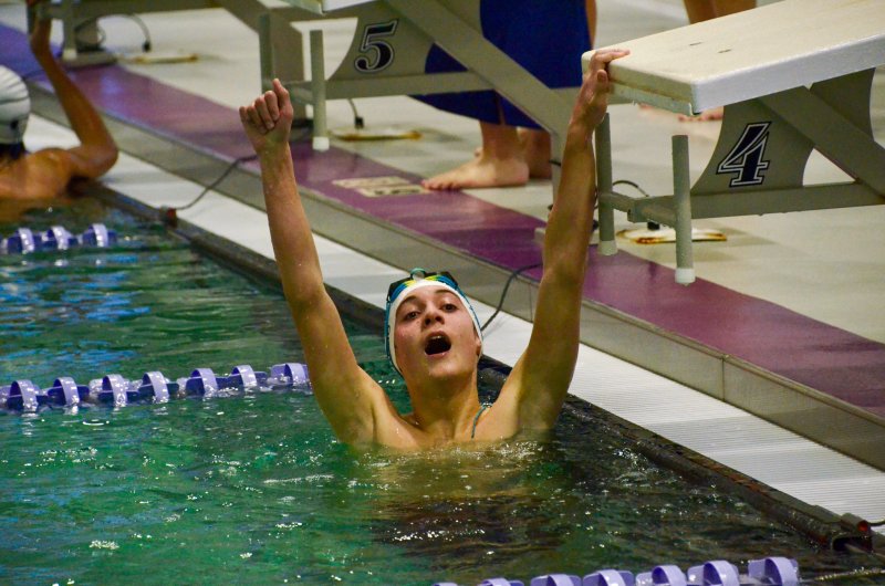 Senior Victoria Evans, sophomore Gretchen Maughan, and juniors Camila Figueroa and Samantha Petty teamed up to win the 200 medley with a 1:59.15 time. Caitlin Perchiniak’s 2:14.03 was good for first in the 200 freestyle, while Maughan’s 2:17.32 sealed the medley. Maughan’s 1:10 also won the breaststroke.