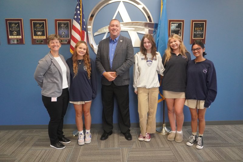 Pettyjohn also met with Dean of High School Lauren Hvorecny and Student Government Association officers Priya Haldar, president; Victoria Evans, vice president; Emma Feagans, secretary; and Caitlin Redick, treasurer.