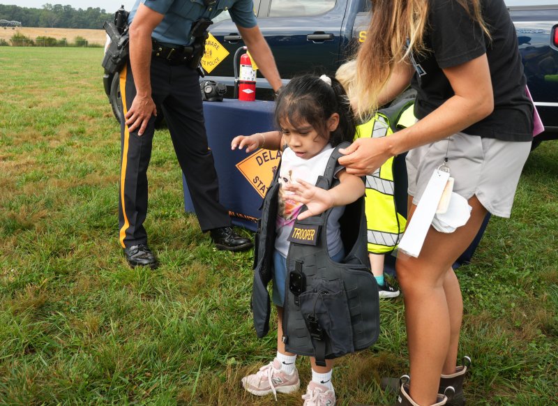This year’s event was the biggest yet, with 12 interactive stations, each run by members of a different local agency or organization. Participating agencies included the Milton Police Department, Lewes Police Department, Department of Natural Resources and Environmental Control, Delaware State Police Community Engagement and Aviation Units, Sussex Consortium school nurse Torie Carter, Beebe’s Community Mobile Health Clinic, Sussex County EMS, Sussex County Mobile Command, Coastal Kids Pediatric Dentistry, Lewes Fire Department, restaurant group SoDel Concepts and hair salon Bad Hair Day? Rehoboth.
