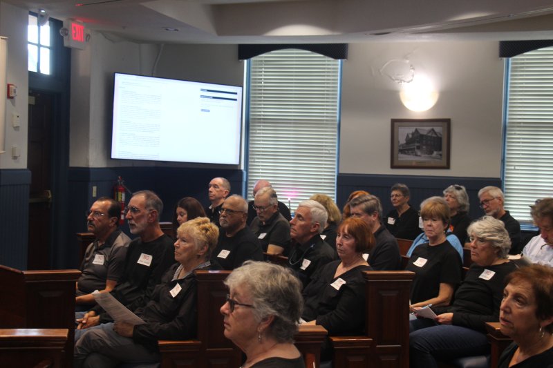 More than 35 neighbors were in the audience, many wearing black shirts with stickers urging denial of the zoning change