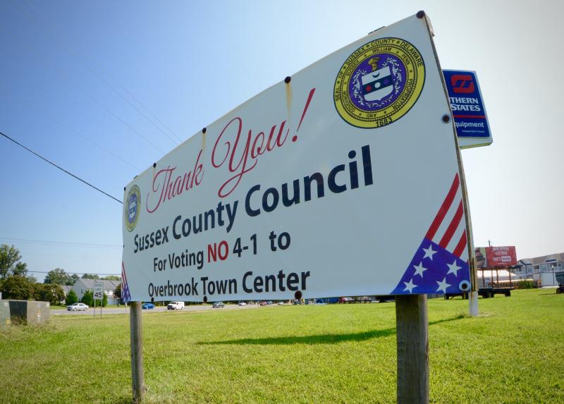 Council voted 4-1 on April 12, 2016, to deny a rezoning request filed by TD Rehoboth LLC, a Timonium, Md. developer, from AR-1, agricultural-residential, to CR-1, commercial residential, for a 114-acre parcel of farmland at the Route 1-Cave Neck Road intersection for Overbrook Town Center, a 850,000 square-foot-shopping center, the largest commercial center ever proposed in the county.
