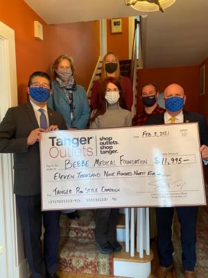 Tanger Outlets recently presented Beebe Medical Foundation with a check for $11,995, a portion of the proceeds from its 2020 Tanger Pink Style Campaign. The two organizations partnered to sell more than 10,000 Pink Savings Cards during the fall campaign.