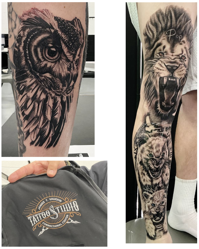 The first six students have completed their classroom training and have begun to ink tattoos for inmate customers in JTVCC’s tattoo studio, which is located in converted storage space on the prison campus. Inmate customers pay for their tattoos using personal funds.