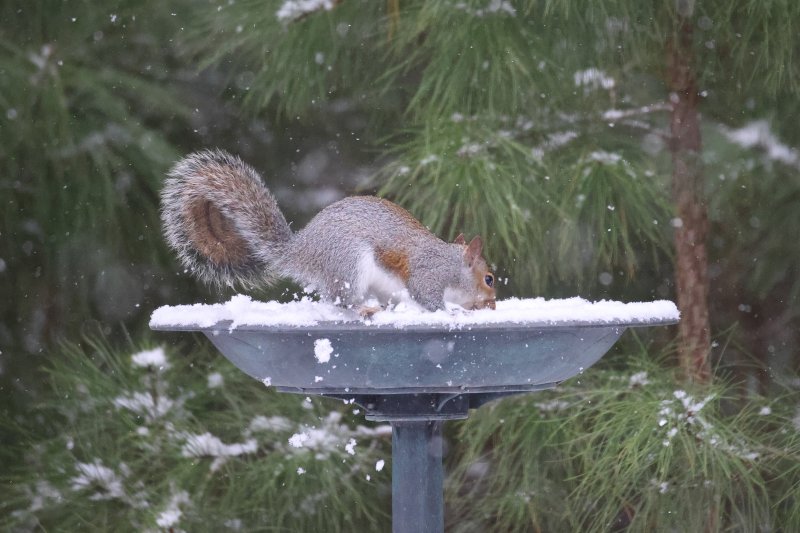 This squirrel came looking for water in Rich Giannola’s backyard, but found a snow cone machine instead.
