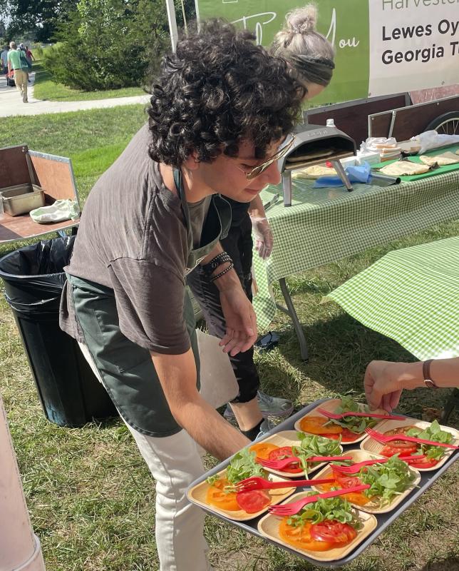 Crandall, with the assistance of Daniel Rede and Megan Ernakovich, prepared tomato carpaccio with arugula and caper dressing, a tomato mocktail and no-cook tomato sauce with chevre cheese flatbread.