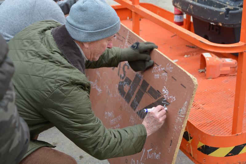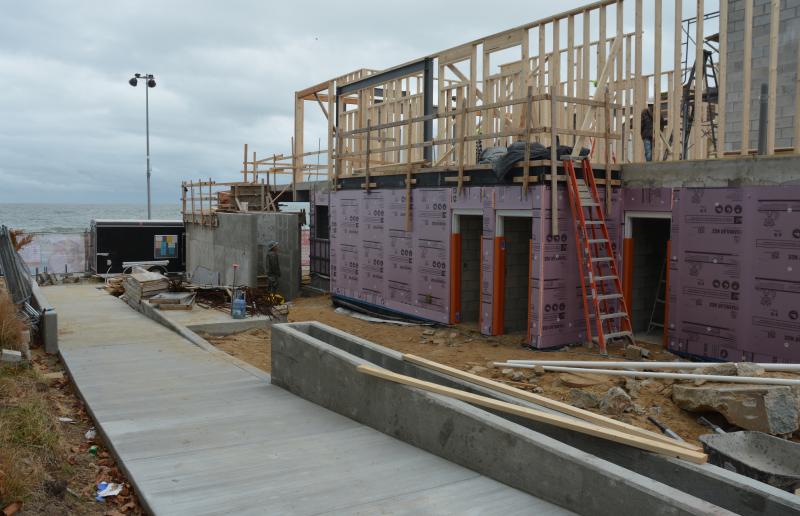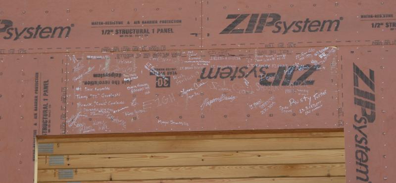 The building’s trusses have been in place for about a week. To celebrate, city officials, staff, current lifeguards and former lifeguards signed a piece of sheathing that was installed above a window facing Baltimore Avenue.