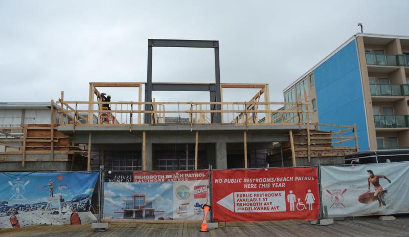 Almost a year after construction began, Rehoboth Beach celebrated the installation of trusses on the city’s new beach patrol and comfort station building with a topping-off ceremony Jan. 21.