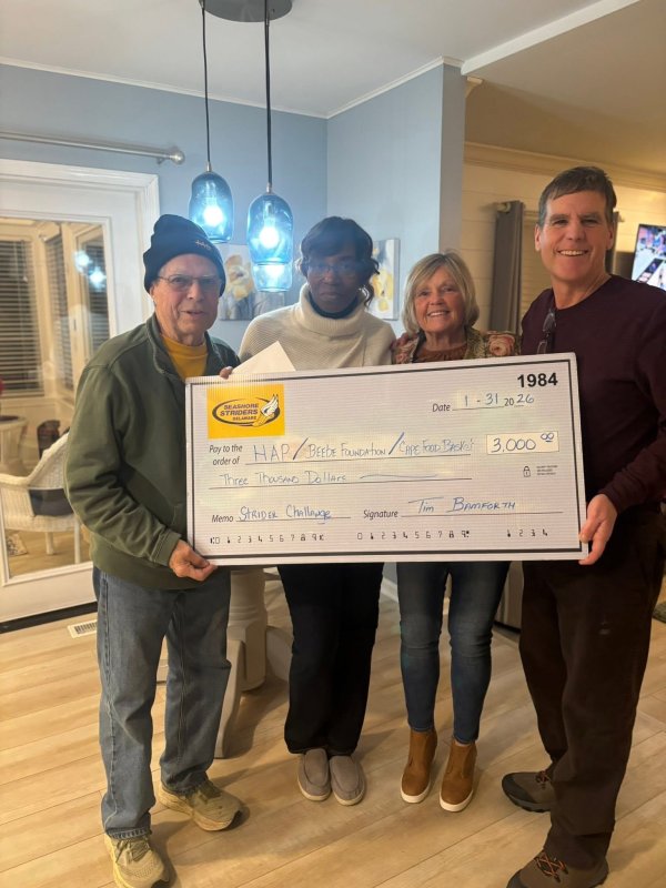 The three charities we donated to at $1,000 each were Humane Animal Partners, Beebe Medical Foundation and Cape Henlopen Food Basket.