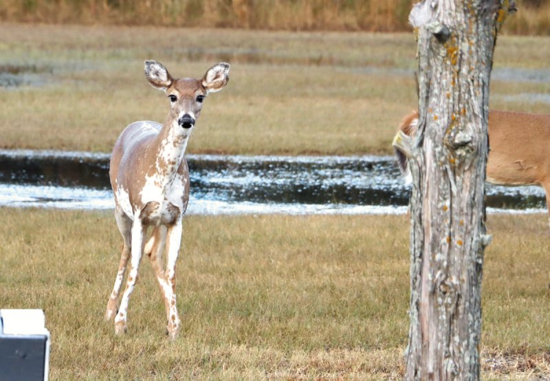 A curious piebald deer was spotted behind American Legion Post 17 in Lewes Oct. 27. The young deer was with a group searching for snacks in the trough by the parking lot.