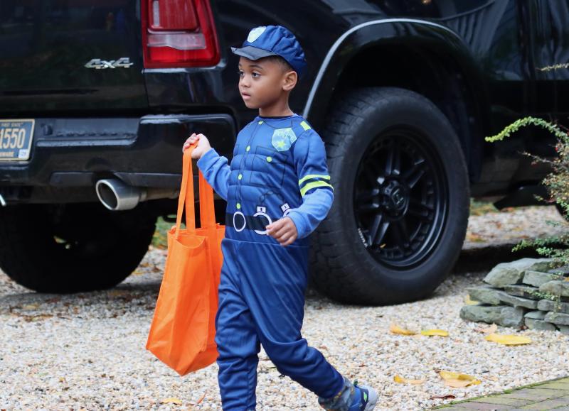 Trick-or-treaters wound their way through the side streets to collect candy. Many homes were decked out and did not disappoint.