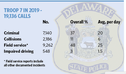 Those were among the statistics presented by Delaware State Police Troop 7 Capt. Darren Short and his administrative staff during a Feb. 17 year-in-review presentation to the public and elected officials at the new troop on Mulberry Knoll Road near Lewes.