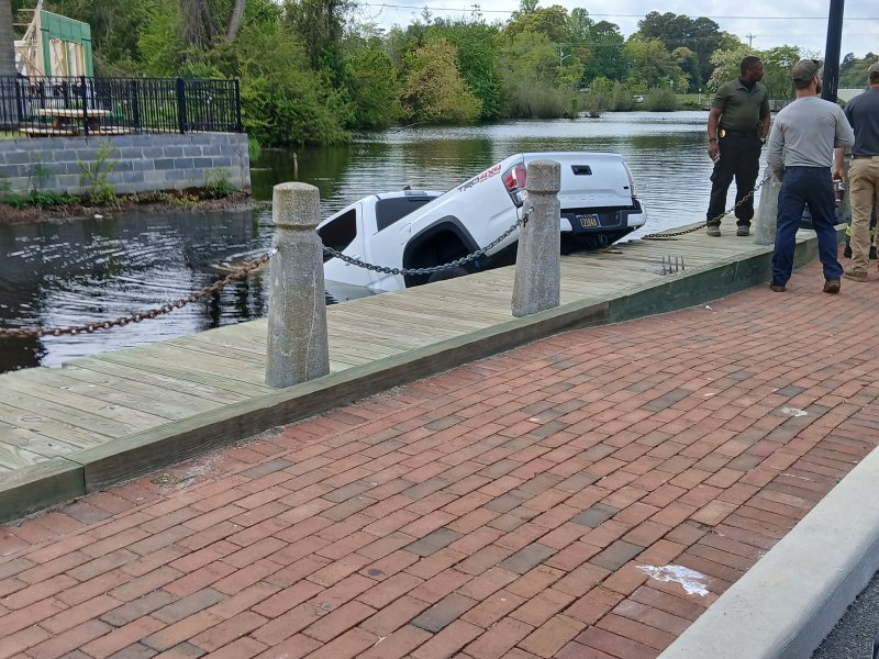 Fishing is a popular pastime on the Broadkill River in Milton, but the Milton Police Department ended up with the unusual task of fishing out some different game April 30 – a pickup truck.
