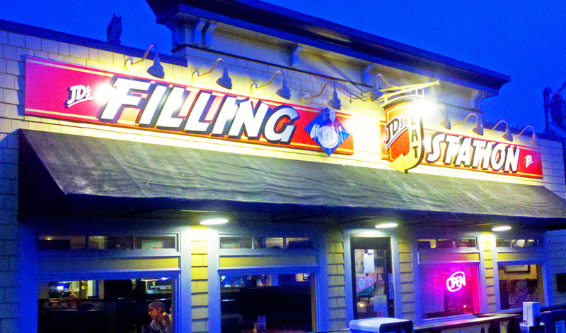 The guys never forgot their retro concept that fizzled so prematurely in New Jersey. So when the old Blue Plate Diner vacated the former gas station spot on Savannah Road, they assembled a ‘50s filling station motif - JD’s Filling Station, to be exact. Vintage decorations include an old gas pump from their Uncle Harry, an antique Flying A pin-up photo of Darryl’s mom, and front grills from iconic ‘50s rides, including a Camaro and a Pontiac.