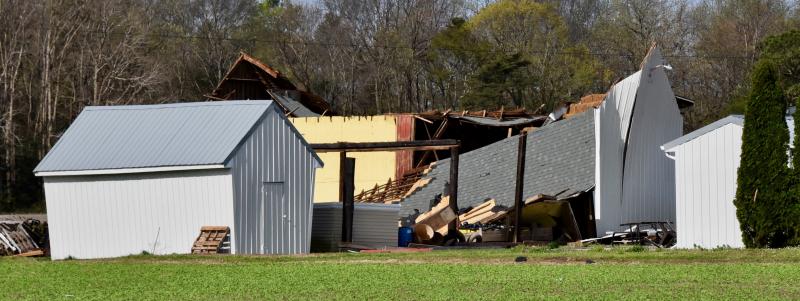 While an EF-2 tornado that hit the western side of Sussex County caused substantial damage to many structures in the Laurel and Seaford area, there was little wind damage in the Cape Region with the exception of a house and barns along Carpenter Road between Lewes and Milton. The National Weather Service says that damage was also caused by a tornado. RON MACARTHUR PHOTOS