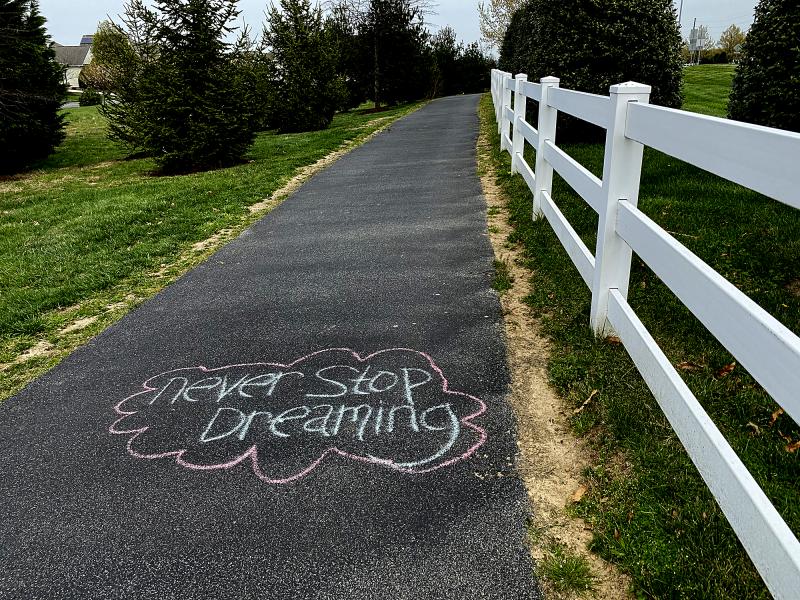 Someone armed with chalk took a walk on the trail around Villages of Five Points and left happy and empowering messages for everyone who walked the path. Hilda Adams reached out to the Cape Gazette to let everyone know she enjoyed it.