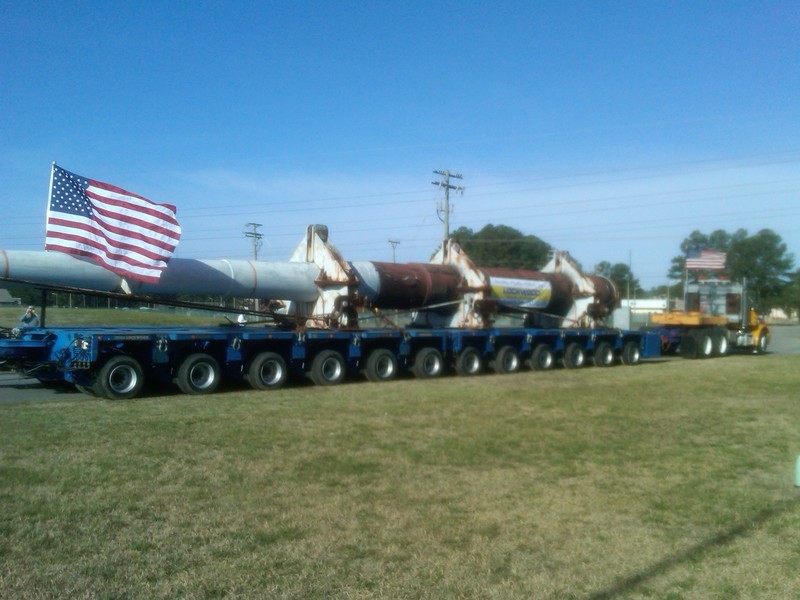 On March 8, a crew from Lockwood Brothers Inc. of Hampton, Va., used a 365-ton crane to lift the 116-ton barrel onto a trailer for a two-mile trip from St. Juliens Creek at the Norfolk Naval Shipyard through Portsmouth, Va., and Chesapeake, Va., to the the Old Dominion power station railroad yard.