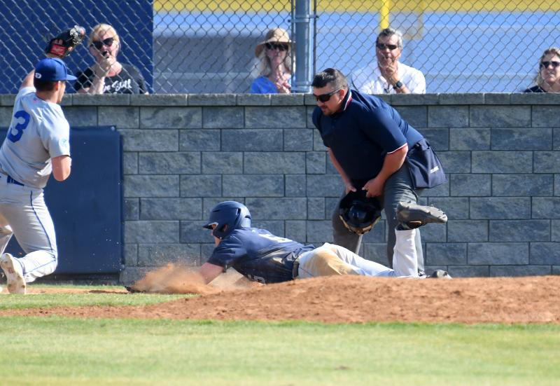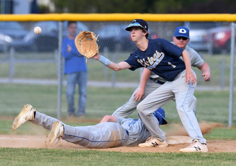 The Vikings’ Grant Evans singled in the third inning. After he stole a base, he scored on a passed ball.